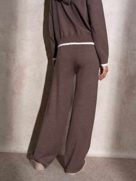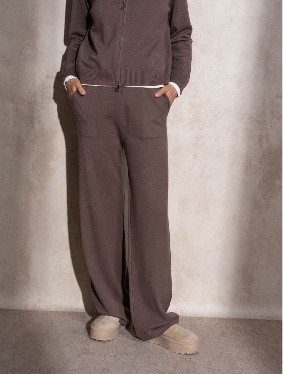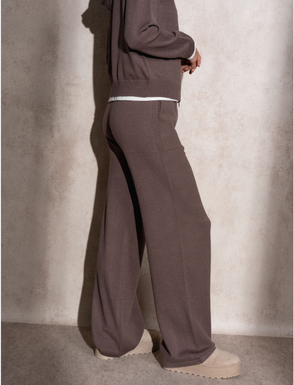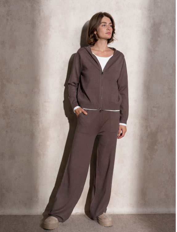 Completo composto da giacca con cappuccio regolabile con coulisse e pantaloni con elastico in vita, gamba larga, finiture a costine.