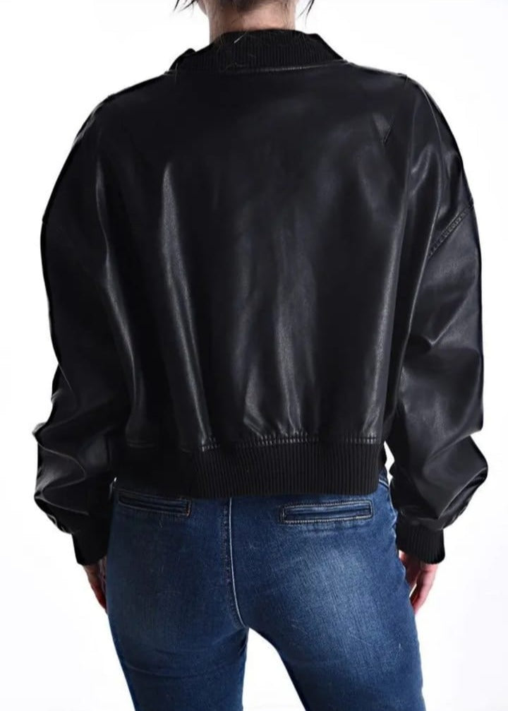 Realizzato in ecopelle di alta qualità, questa giubbotto unisce design contemporaneo e artigianalità sostenibile. Il materiale morbido offre l'estetica raffinata della pelle tradizionale. La sartorialità strutturata e le linee pulite creano una silhouette versatile che si adatta perfettamente sia al giorno che alla sera. Le finiture di alta qualità e l'attenzione ai dettagli riflettono gli standard di lusso della moda minimalista moderna. Un capo essenziale per il guardaroba più esigente.