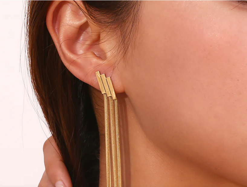 Gli orecchini della linea Geometric sono realizzati in acciaio inossidabile resistente. Il motivo a strisce è valorizzato dalla placcatura in oro 18 K, conferendo un'eleganza sobria e uno stile minimalista.