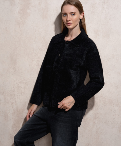 Questa giacca corta co effetto pelliccia ecologica offre un'alternativa sofisticata alla pelliccia tradizionale, grazie ai materiali sostenibili e di alta qualità. Progettata per garantire comfort e stile, offre calore mantenendo una sensazione di leggerezza, rendendola ideale per le giornate più fresche. Il suo taglio raffinato si adatta a diversi outfit, garantendo eleganza e scelte di moda etica.