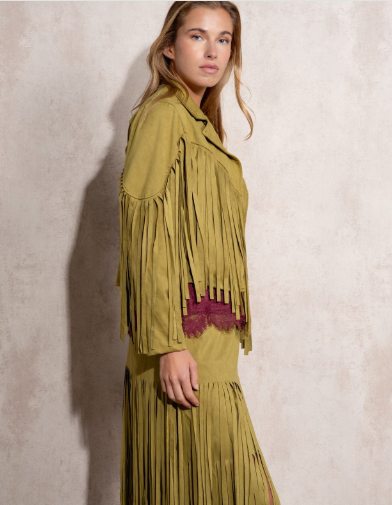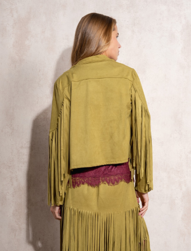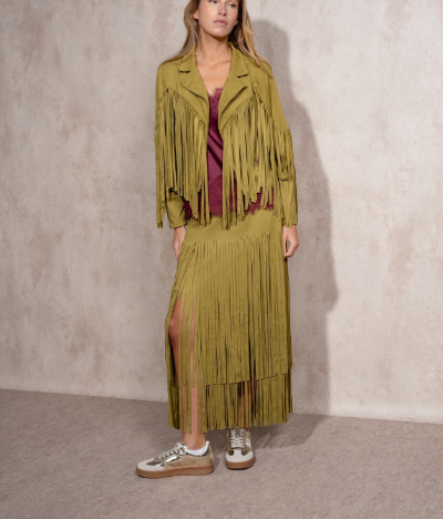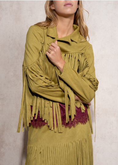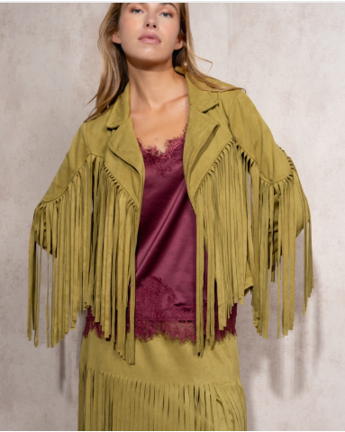 Il trench effetto scamosciato con frange unisce eleganza e dettagli sofisticati in un capo versatile. Realizzato con materiali di alta qualità, offre una texture morbida che richiama la pelle scamosciata, mentre le frange aggiungono movimento e un tocco distintivo. Perfetto per chi cerca un look raffinato e originale, questo trench garantisce comfort e stile in ogni occasione